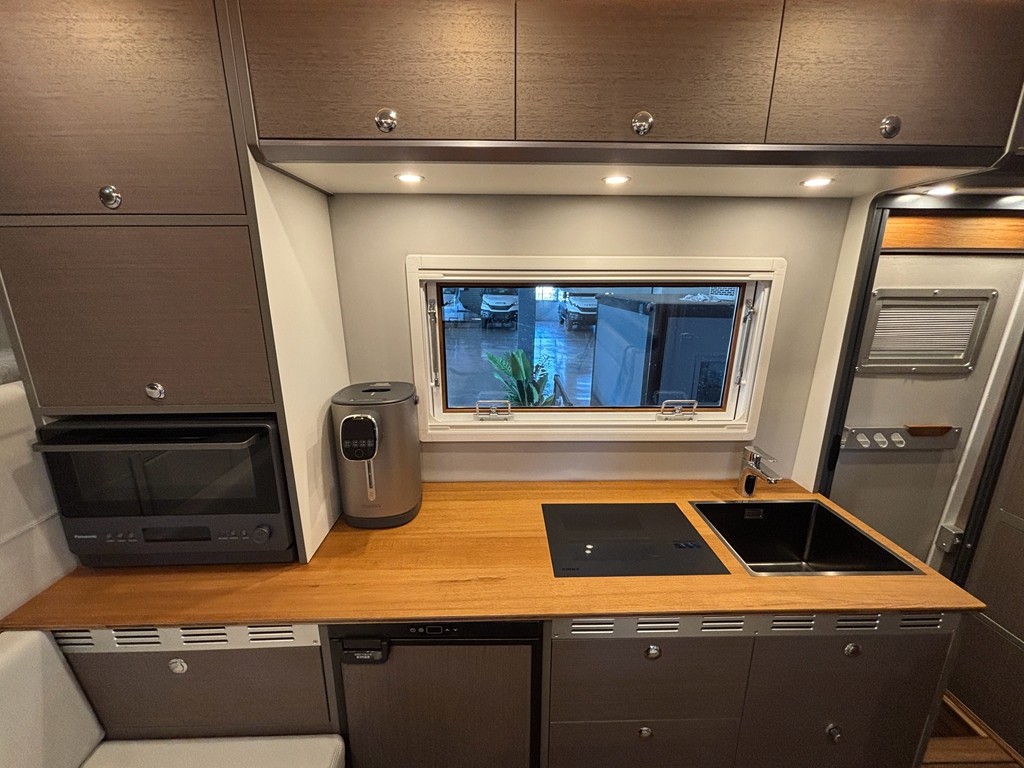 厨房部分,日本松下进口微波蒸烤箱一体机小米智能持续加热电磁炉房车专用英德尔冰箱 76L多功能一体式橱柜,现代化的厨房生活即刻打开!户外还配备了房车专用户外移动厨房带有柴油猛火炉灶十人左右的户外露营野餐也能轻轻松松实现。